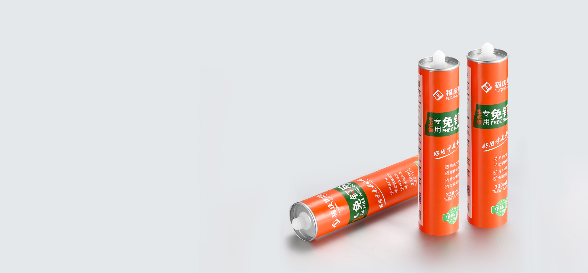 福慶免釘膠具有超強粘合力、免鉆孔、不損害基材、節時省量等突破性功能。在施工過程削減了繁瑣的鉆孔、打釘等施工過程,有效地提高施工效率及節約施工成本,其極高的性價比深受消費者青睞。